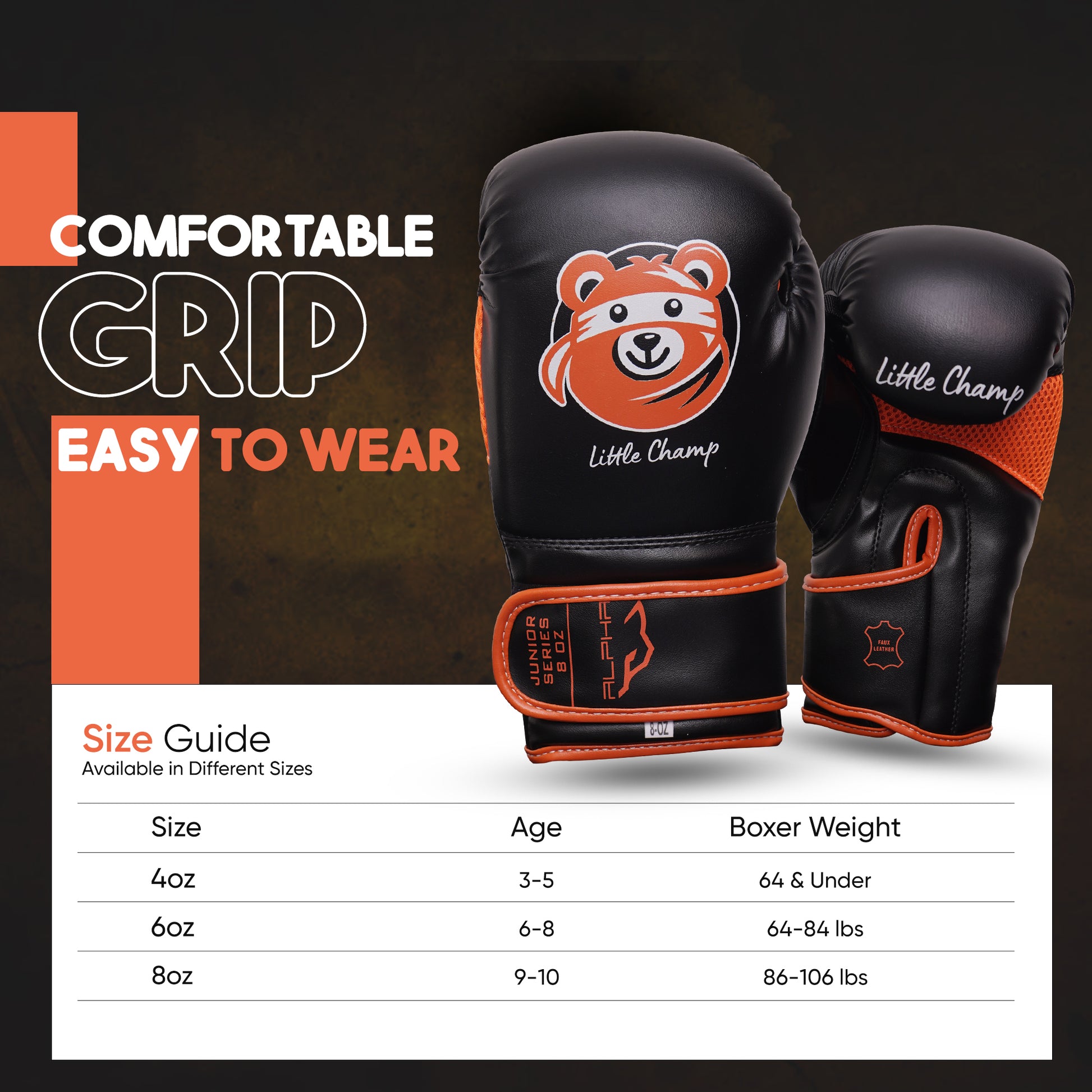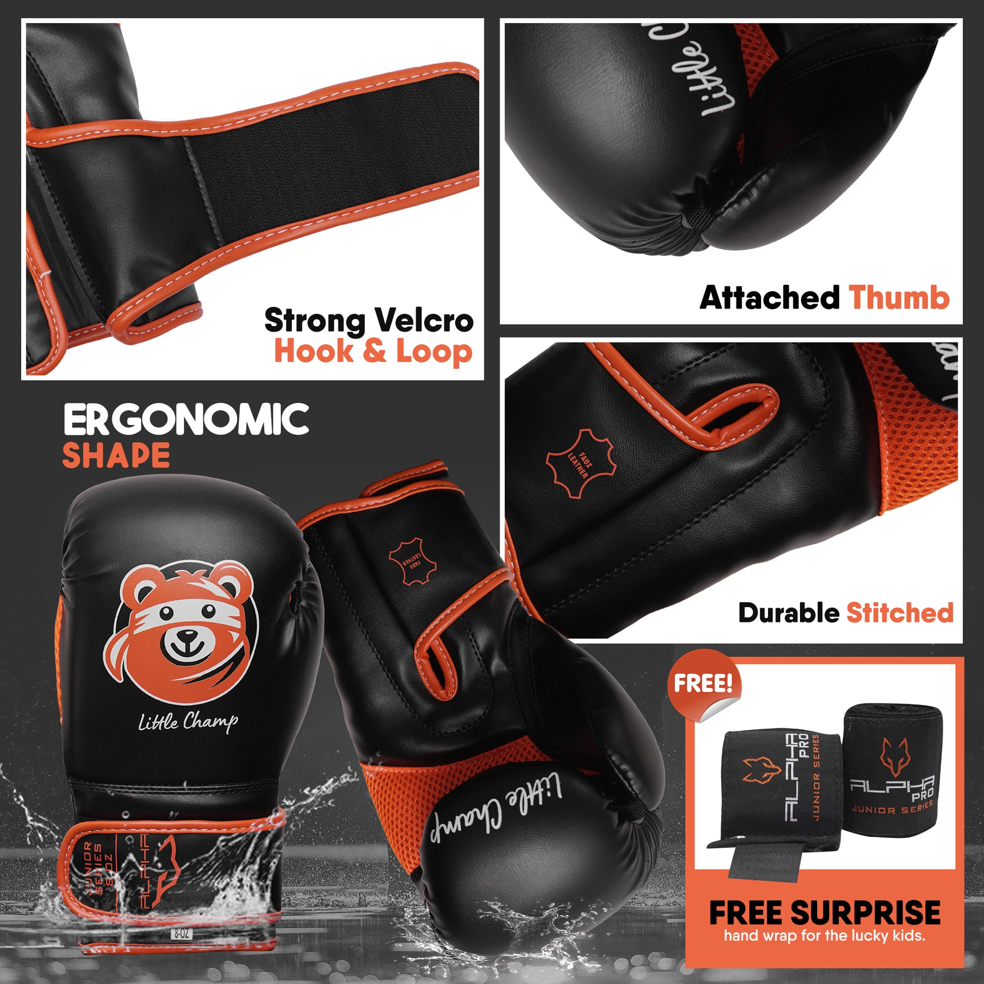 ALPHA PRO kids boxing gloves bring excitement to training with their fun face character designs, keeping kids motivated as they develop their skills and build confidence. Every punch will feel inspired to push their limits and grow stronger.