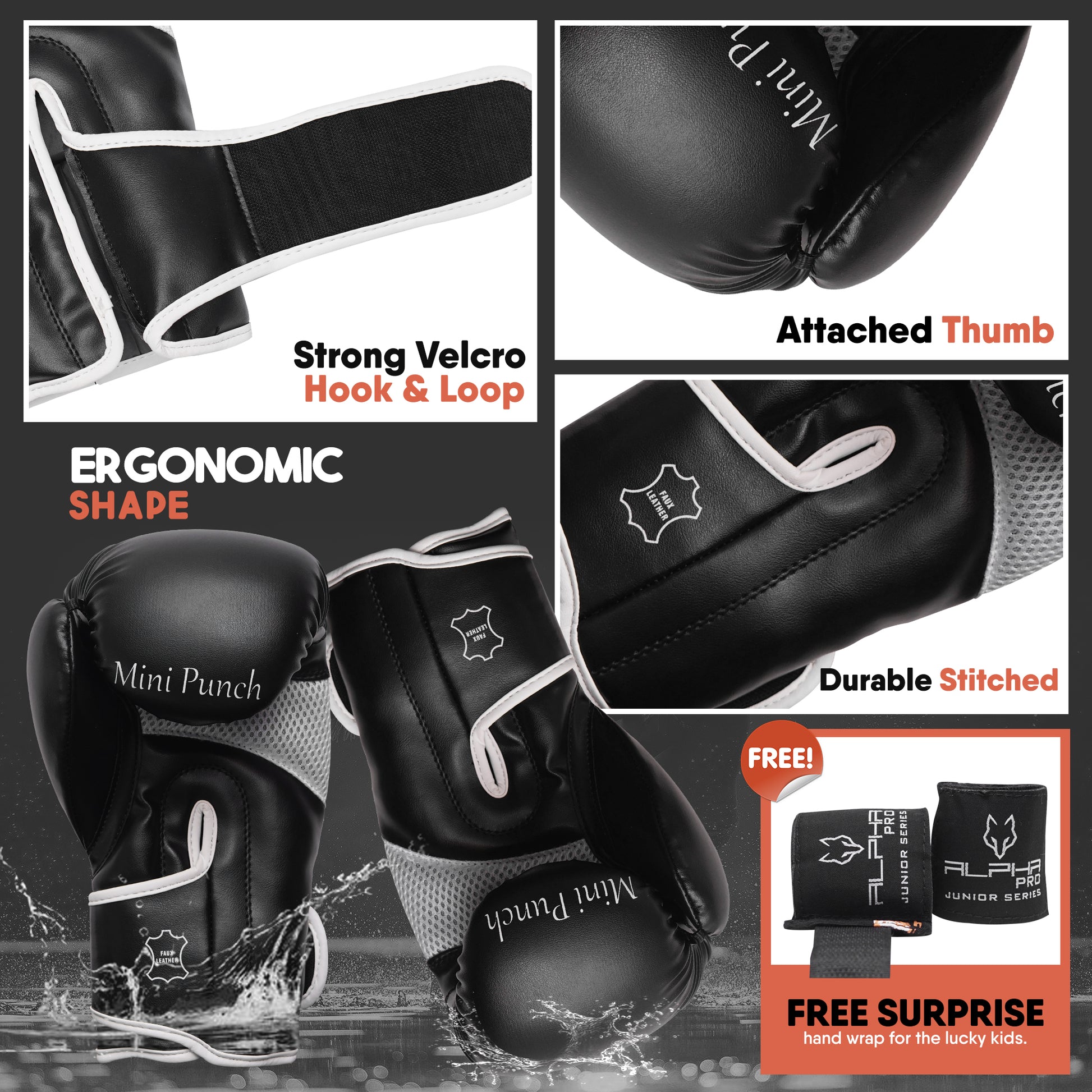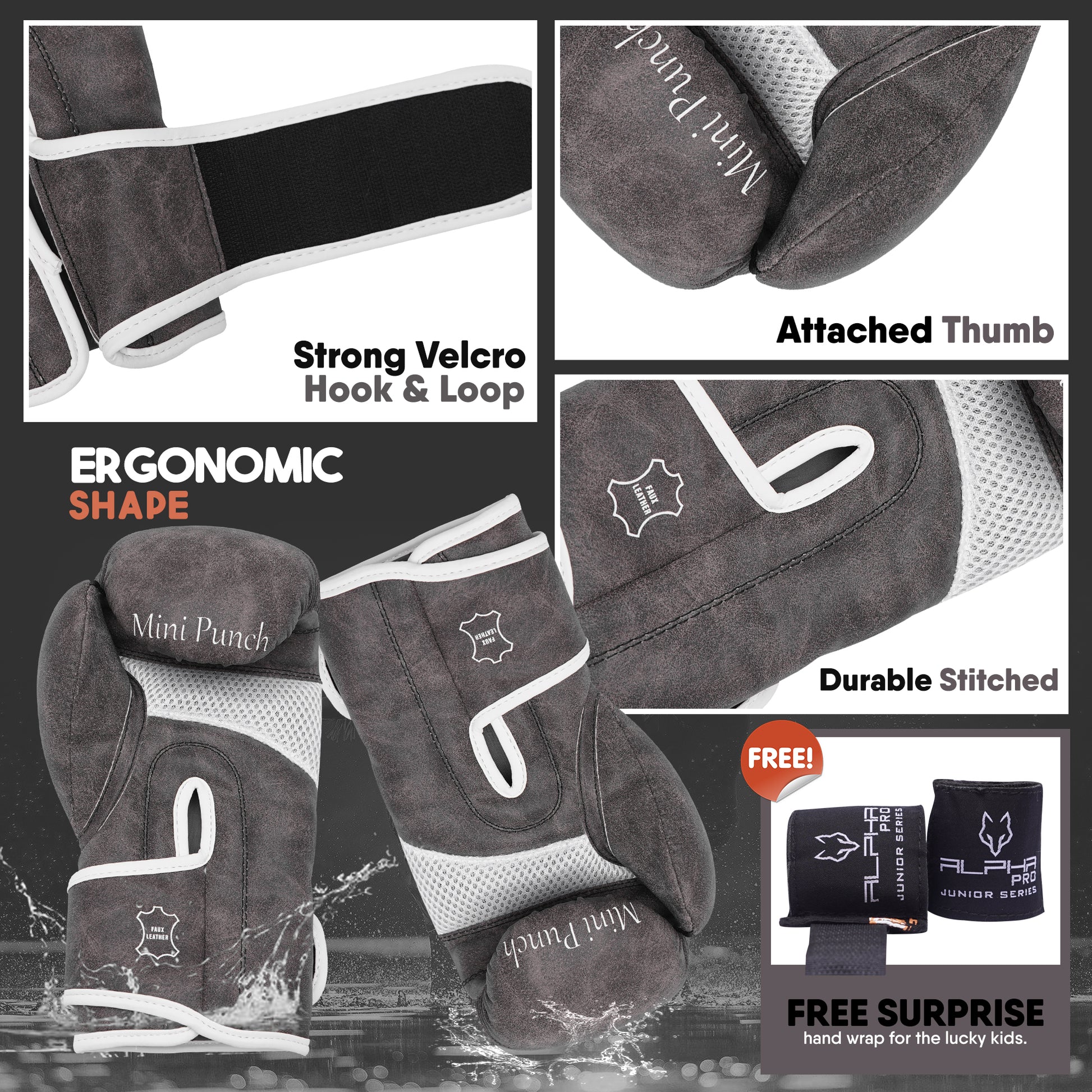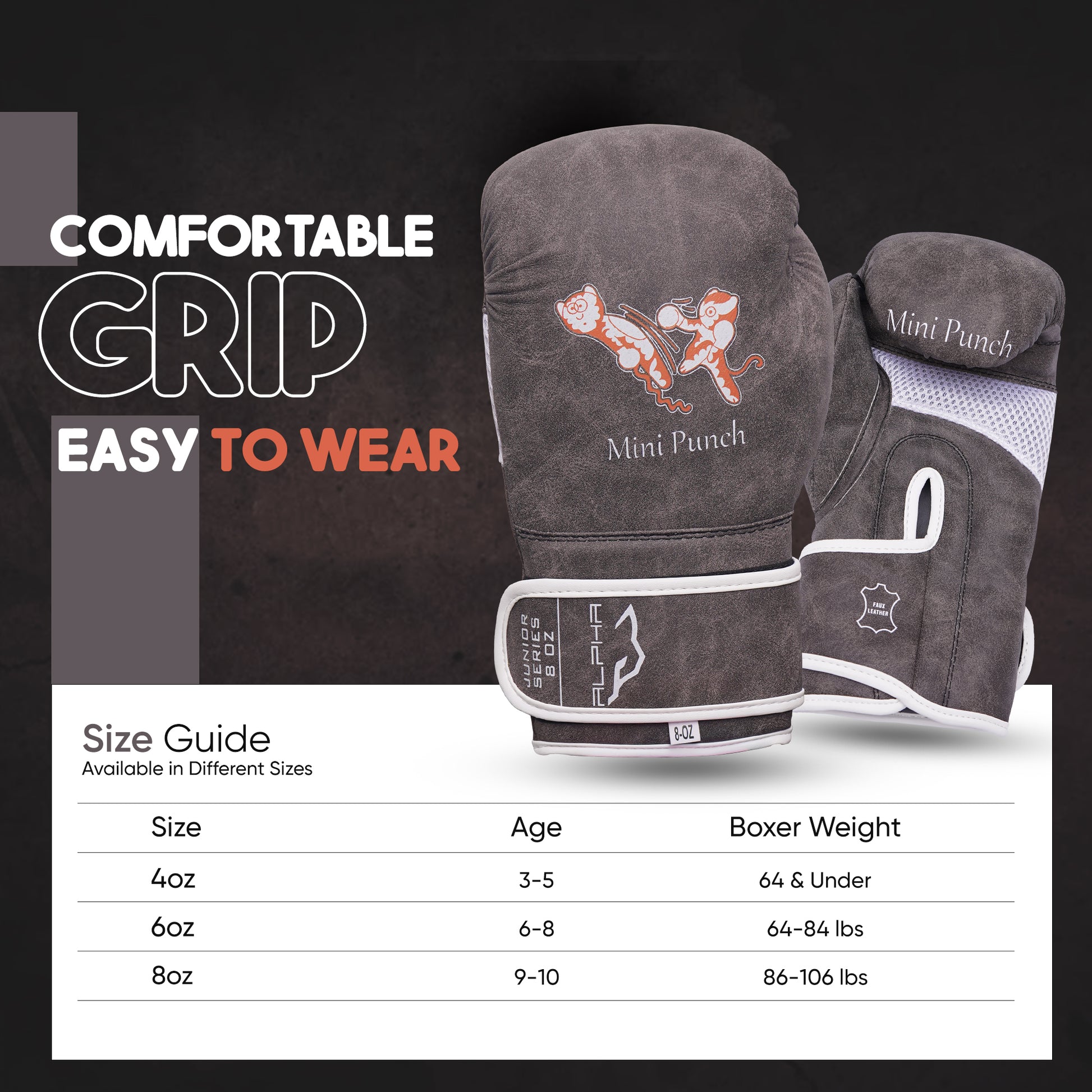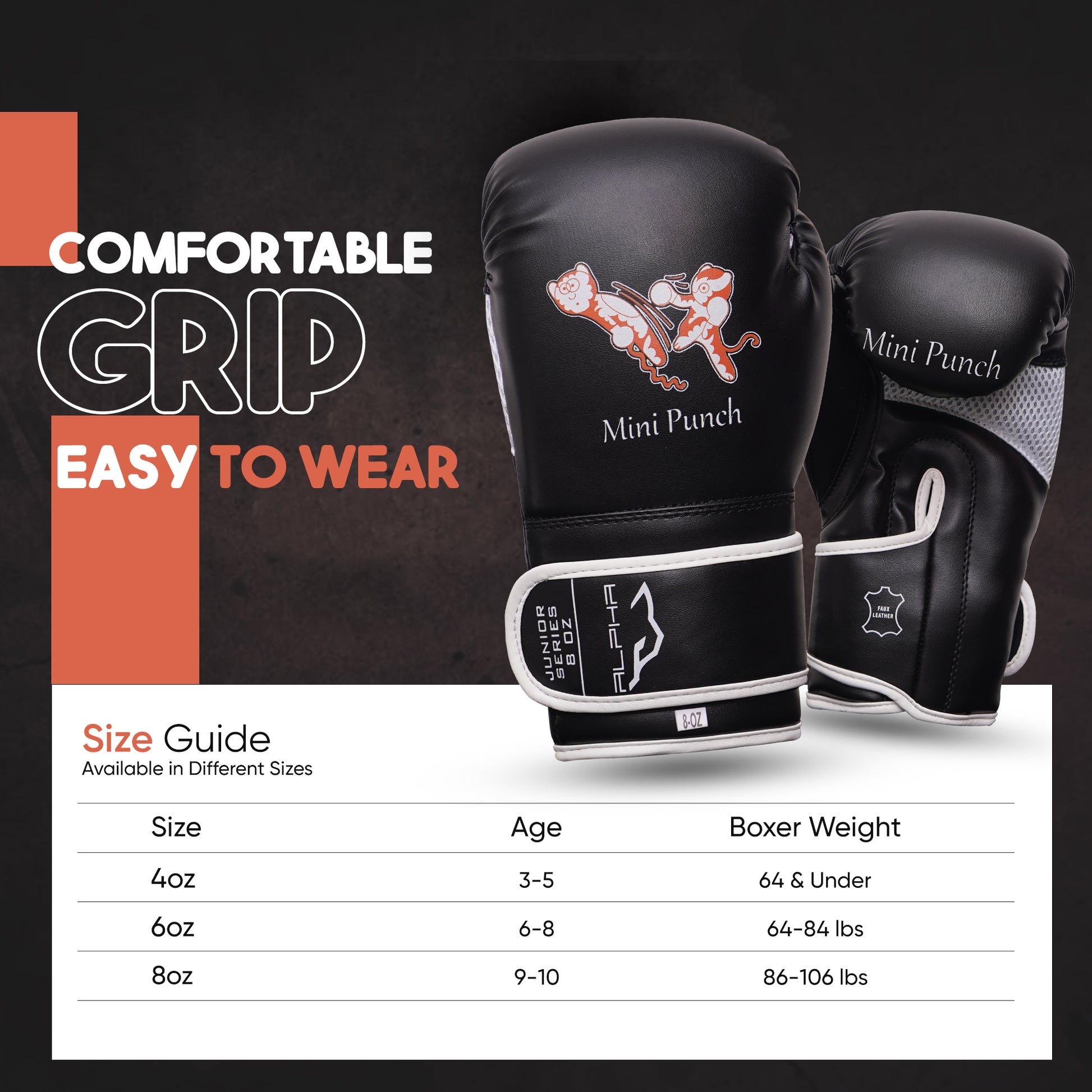 ALPHA PRO kids boxing gloves bring excitement to training with their fun face character designs, keeping kids motivated as they develop their skills and build confidence. Every punch will feel inspired to push their limits and grow stronger.