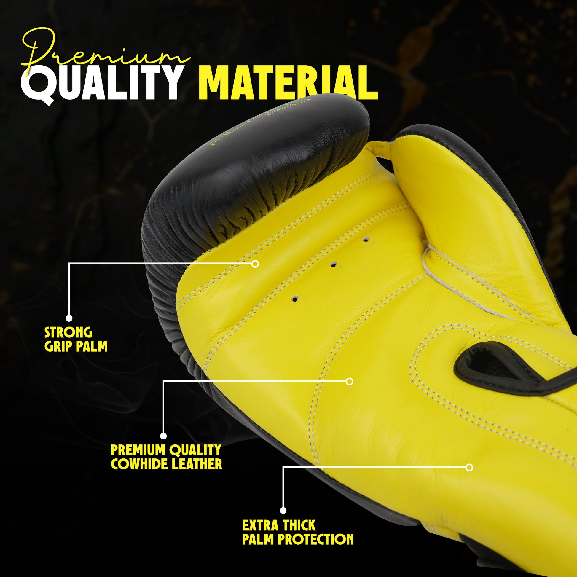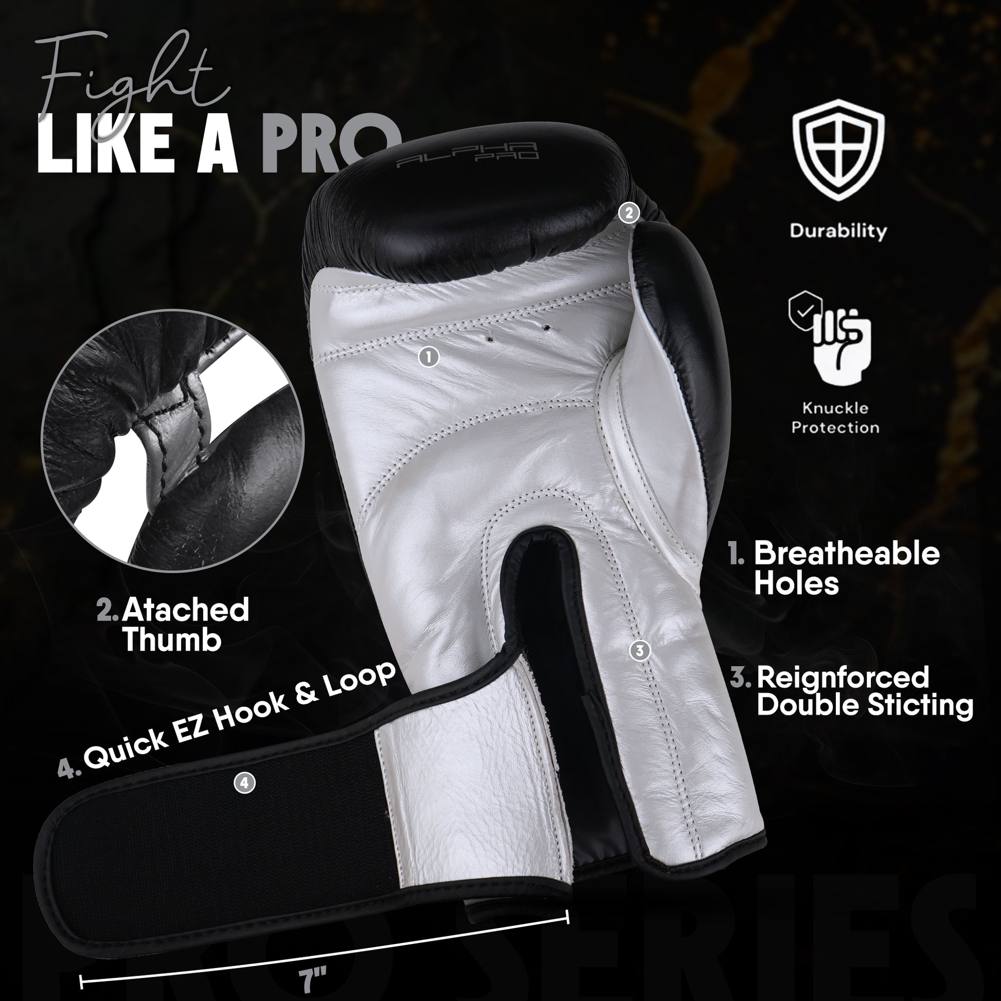 PREMIUM GENUINE LEATHER: Alpha Pro Series Boxing MMA Muay Thai gloves are crafted from high-quality cowhide leather for maximum durability, comfort, and long-lasting performance. These Kick Boxing gloves are ideal for both beginners and professional-level athletes making them the perfect choice for aspiring professionals, youth, men, and women.