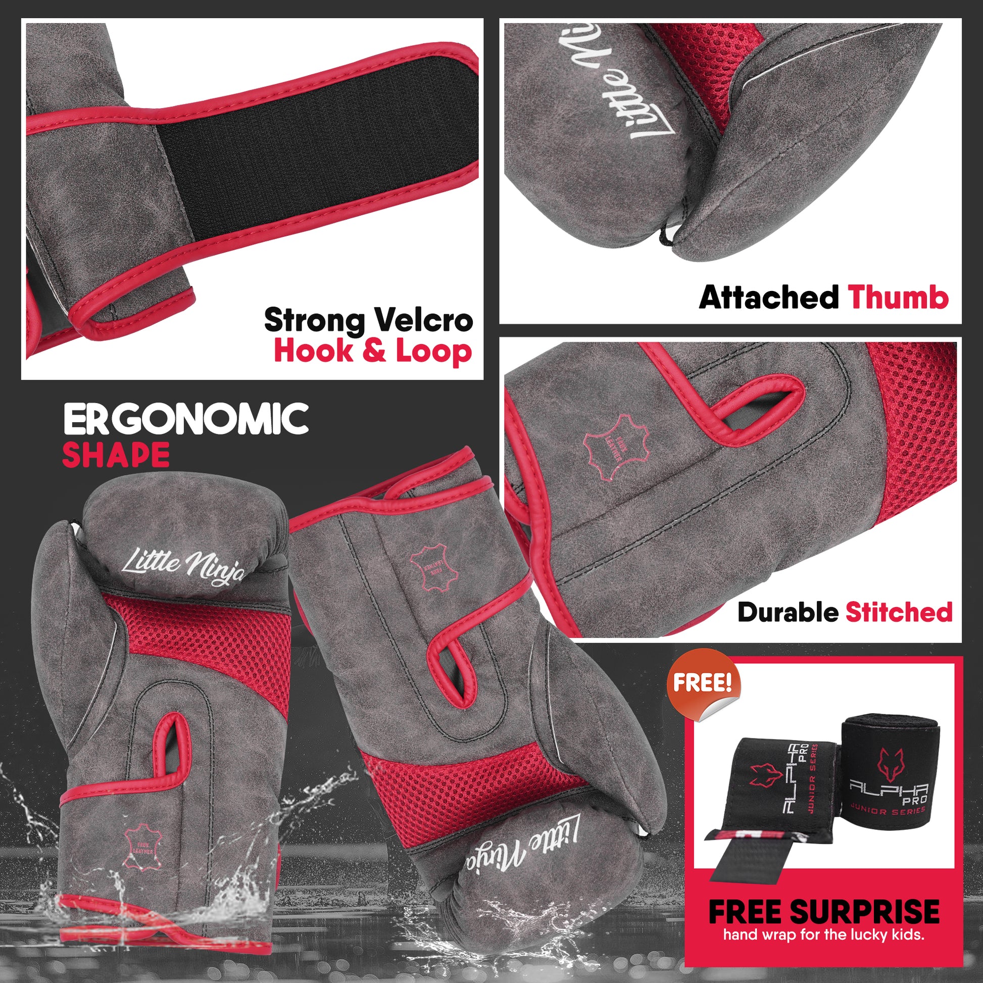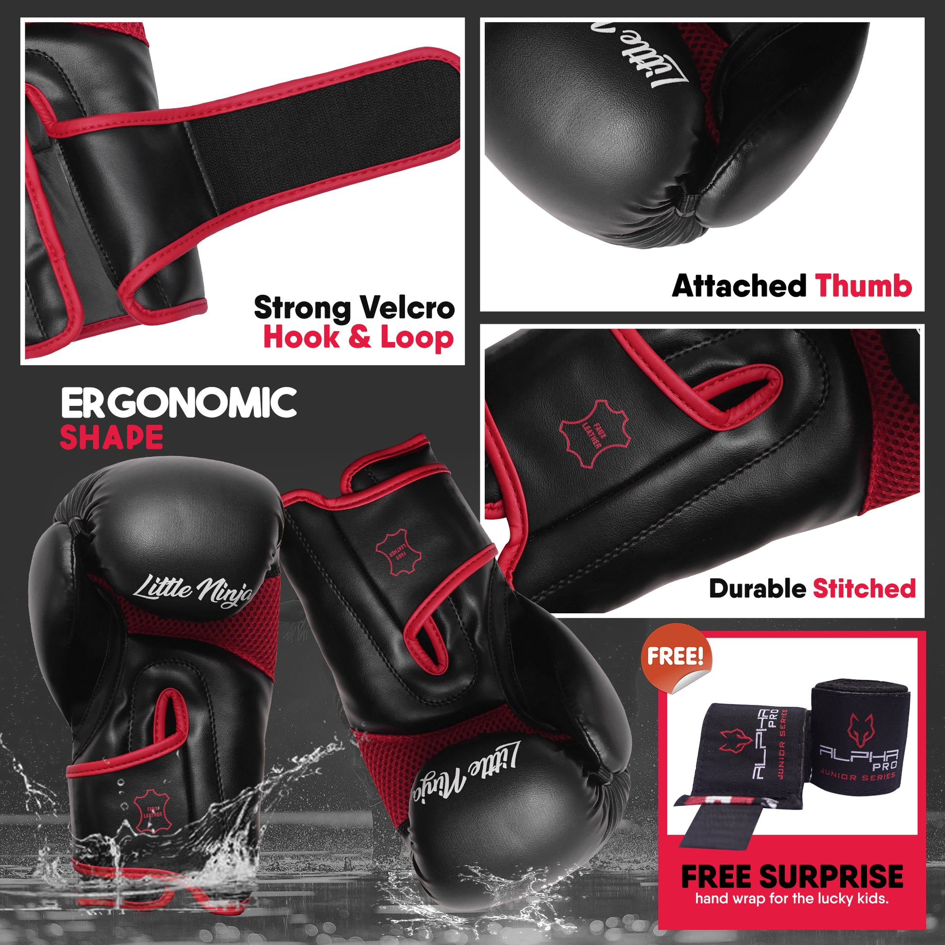 Kids & Toddler boxing gloves with padded knuckles, cushioned palms, and free hand wraps included ensure optimal safety, reducing the risk of injury during training and sparring.