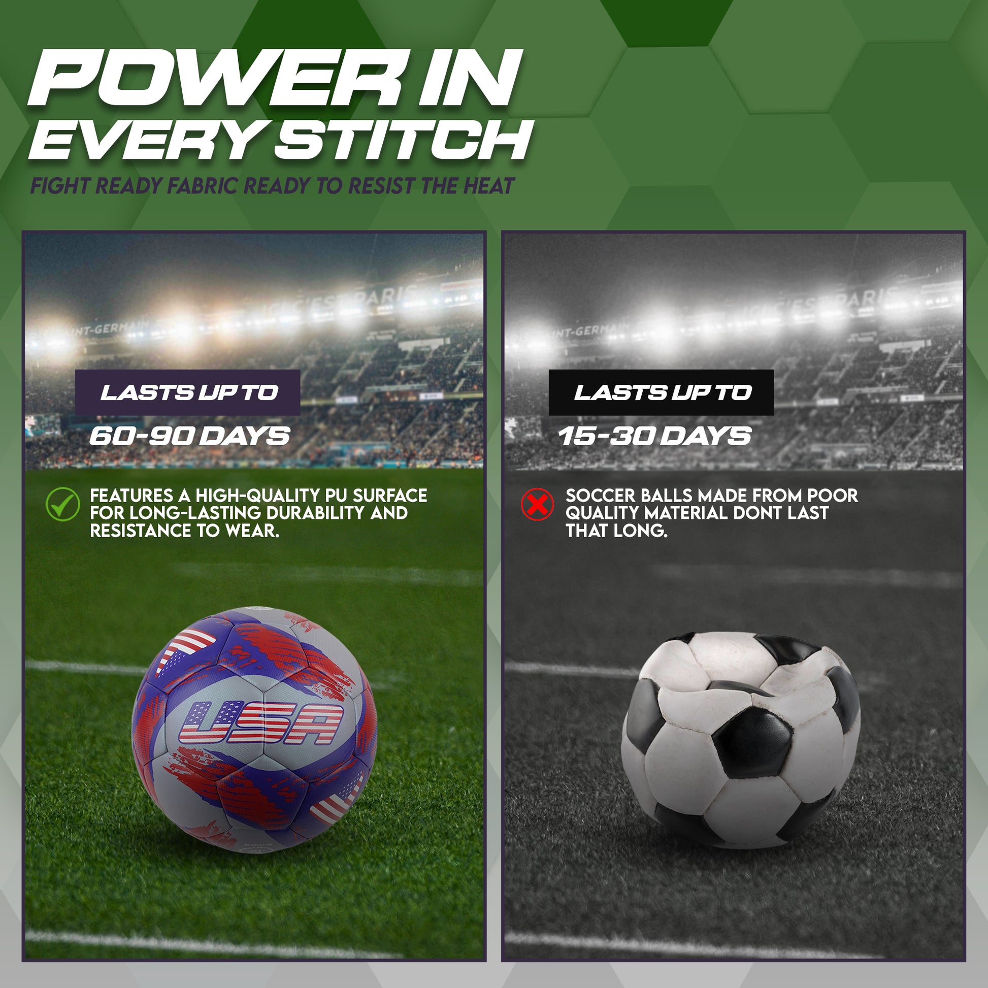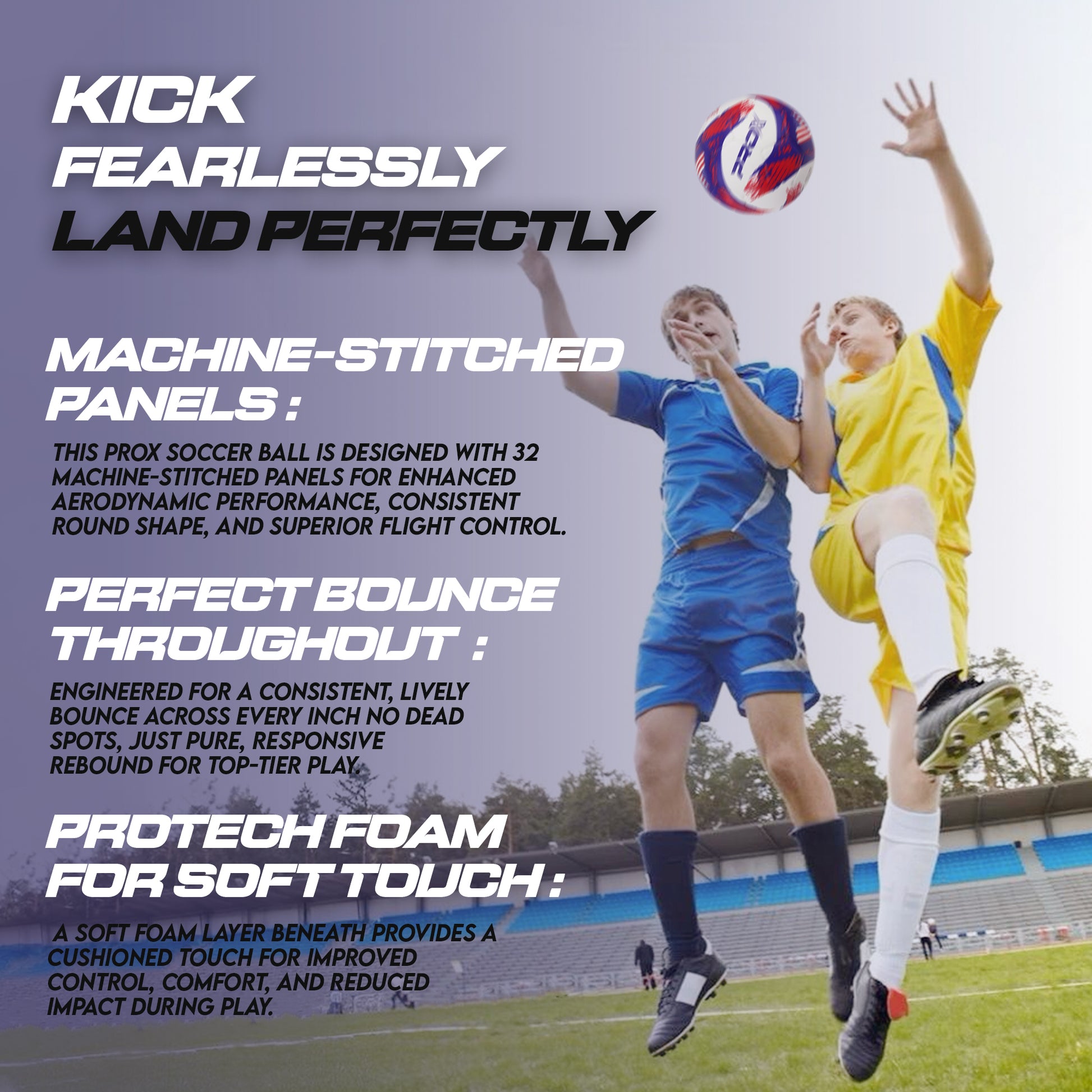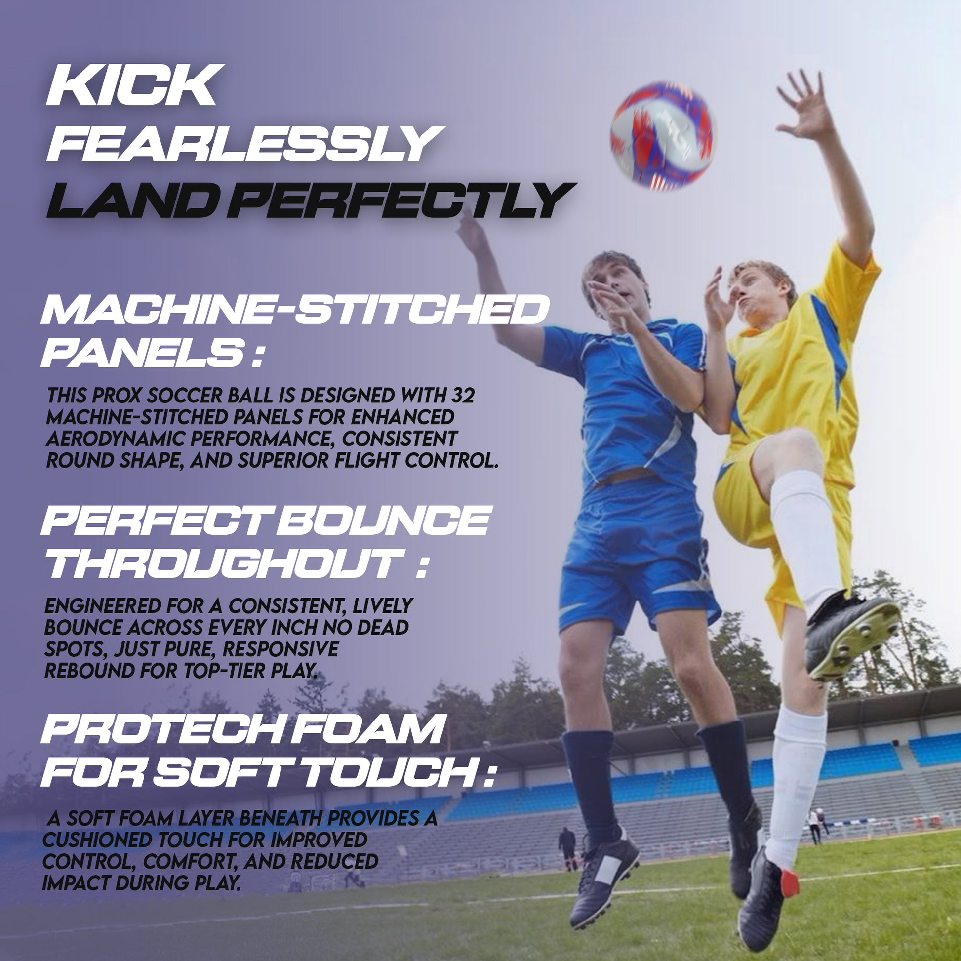Features a high-quality PU surface for long-lasting durability and resistance to wear. The inner ProTech foam cushioning layer offers a soft touch soccer ball feel, better control, and player comfort—great for youth, adults, and professionals.