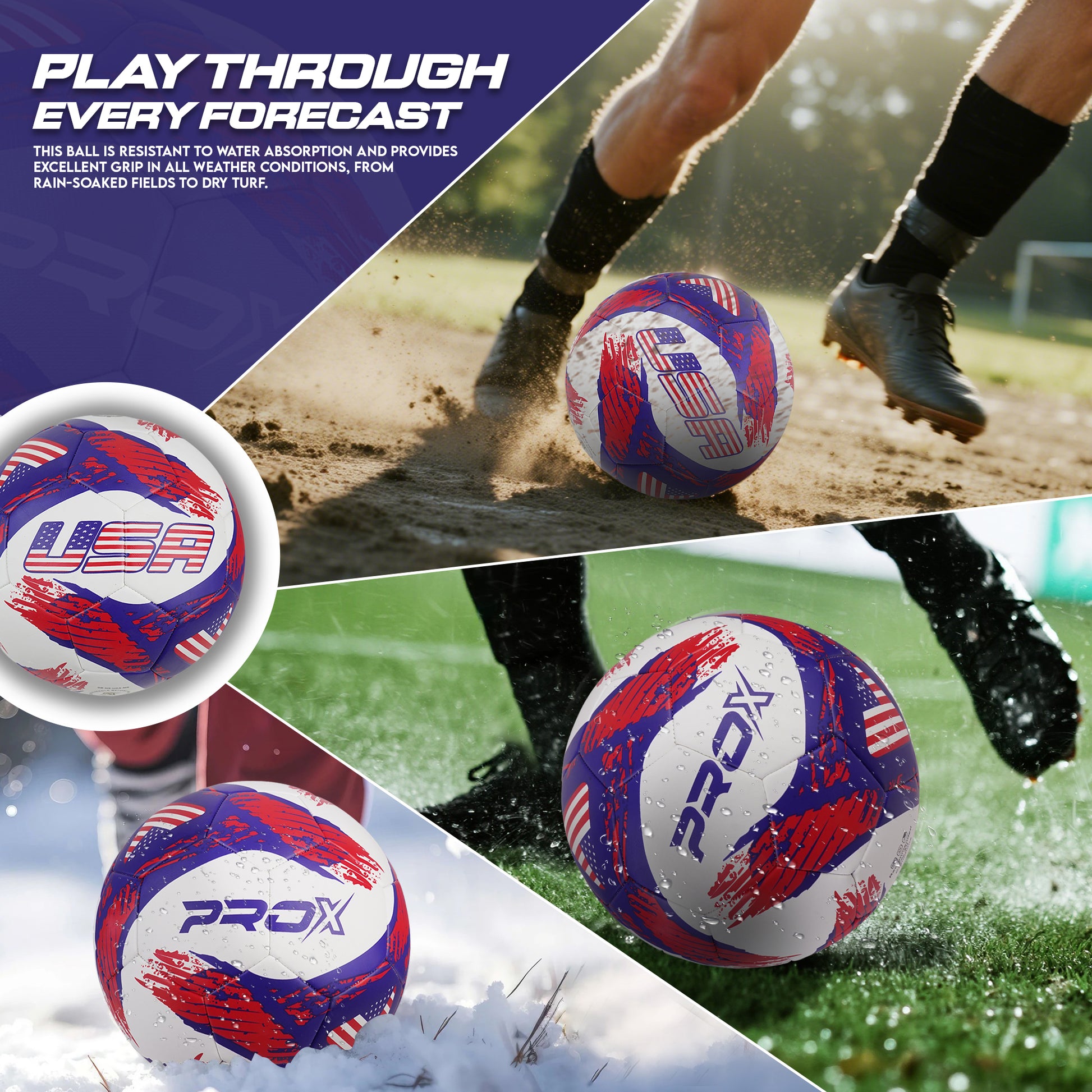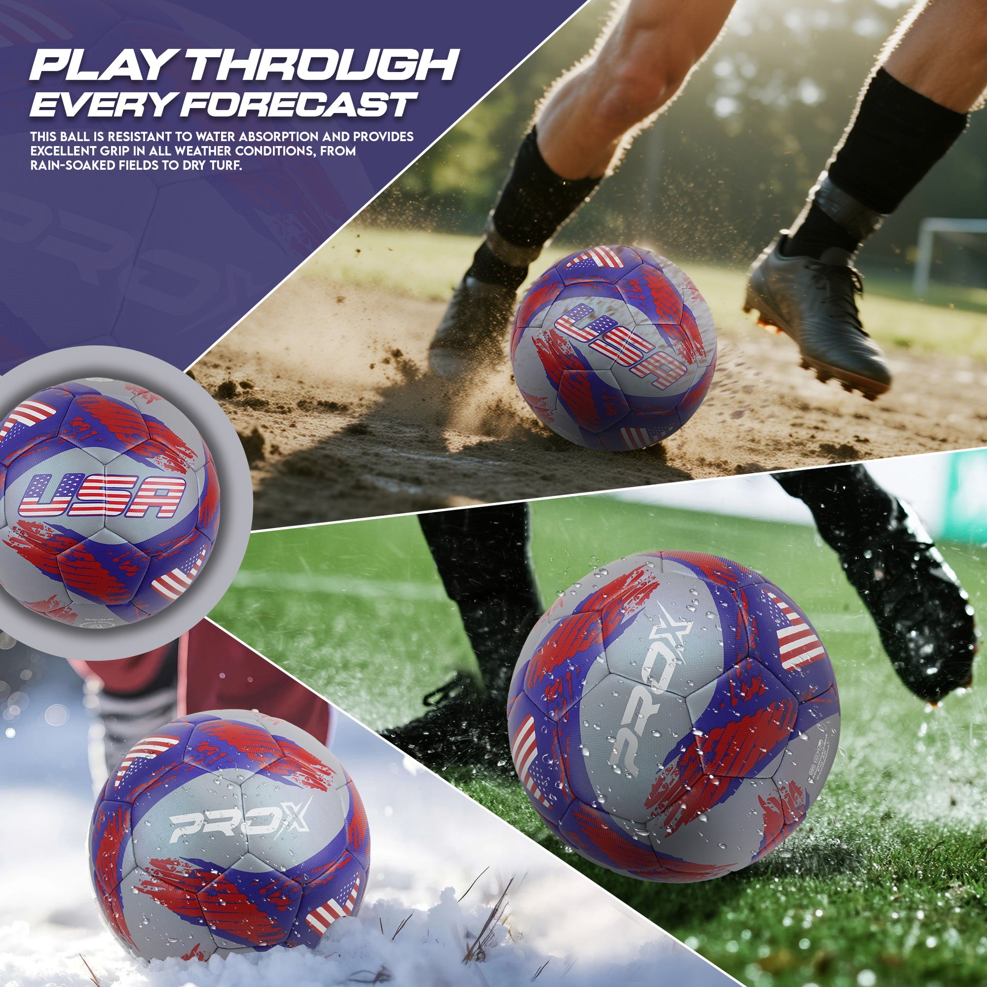 Built for indoor soccer and outdoor use, this ball is resistant to water absorption and provides excellent grip in all weather conditions, from rain-soaked fields to dry turf. It features advanced 360 Pro Seal technology, which prevents water damage and ensures consistent performance in any playing condition.